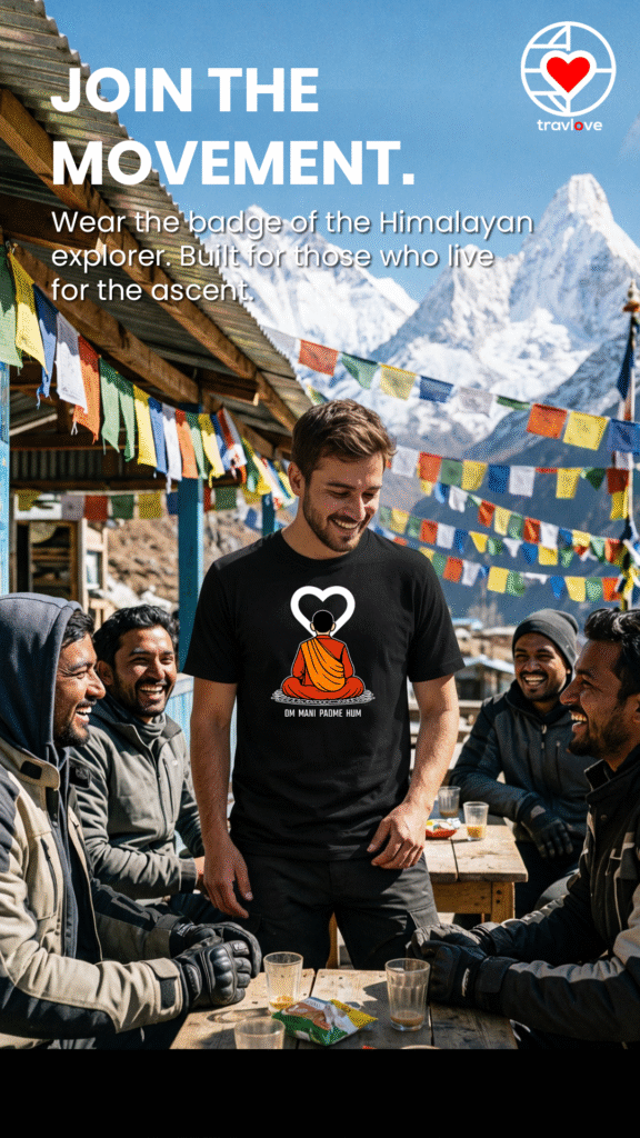 Spiti Valley Monk Meditation T-Shirt | Om Mani Padme Hum Travel Tee India | Travlove