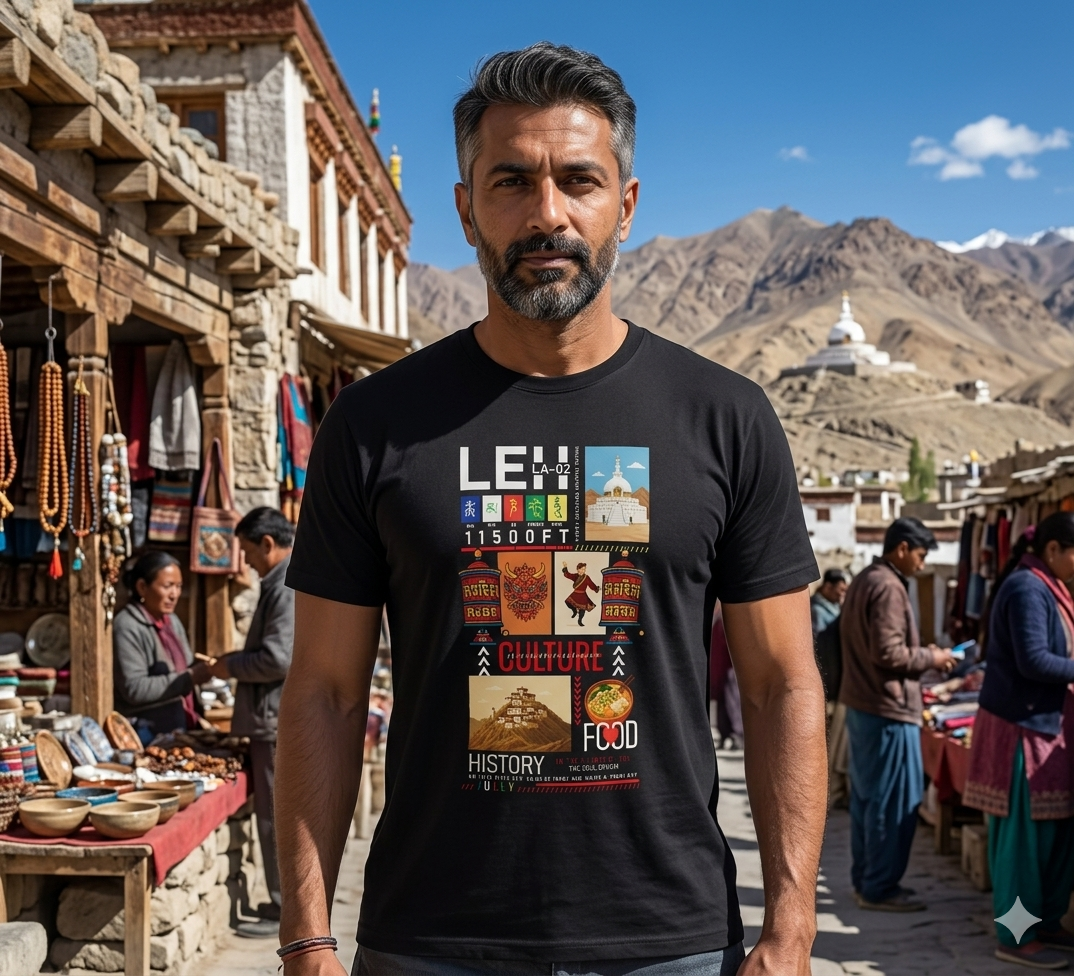 Once Leh gets into your soul, it never leaves. The Leh Love T-Shirt is for every biker, backpacker, and traveller who has made the journey to the heart of Ladakh — or is counting down the days until they do. A must-have Ladakh t-shirt online, designed in India for real explorers.
